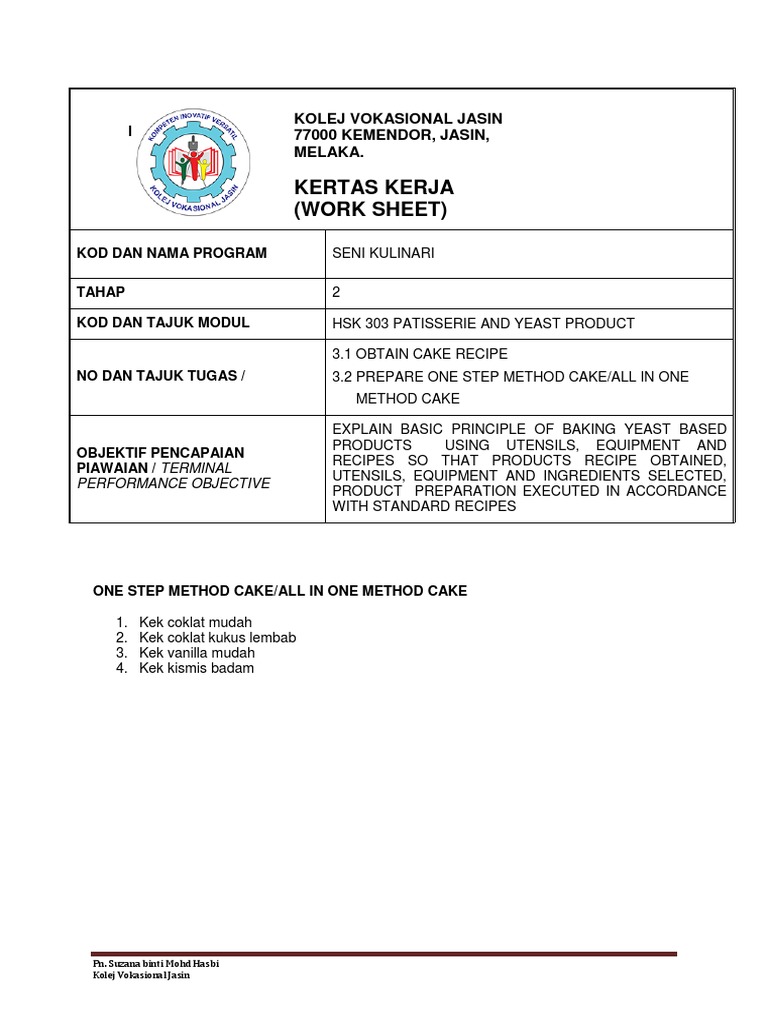 Kertas Kerja Hsk 303 Cake Making All In One Pdf